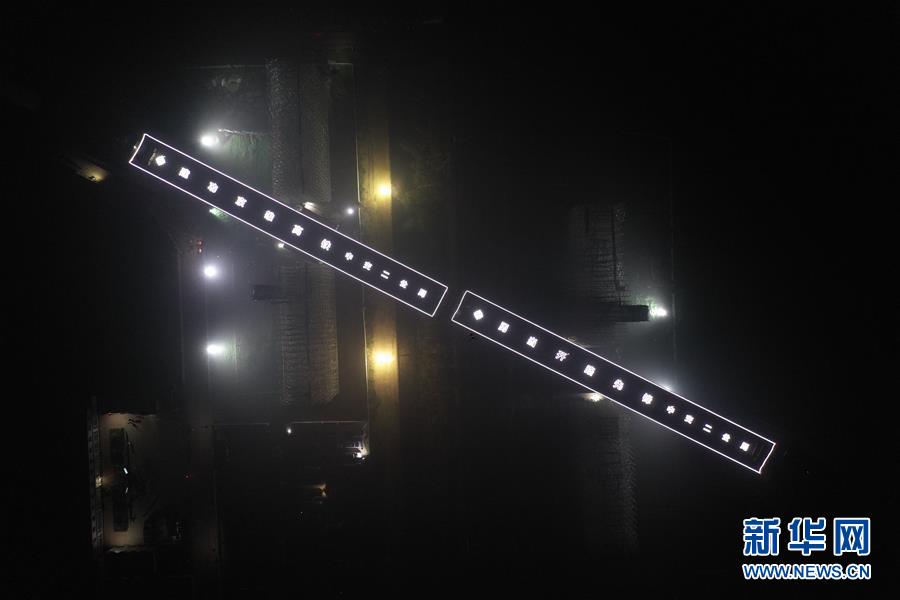 這是8月27日凌晨無人機(jī)拍攝的轉(zhuǎn)體即將完成的橋梁。 新華社記者 邢廣利 攝