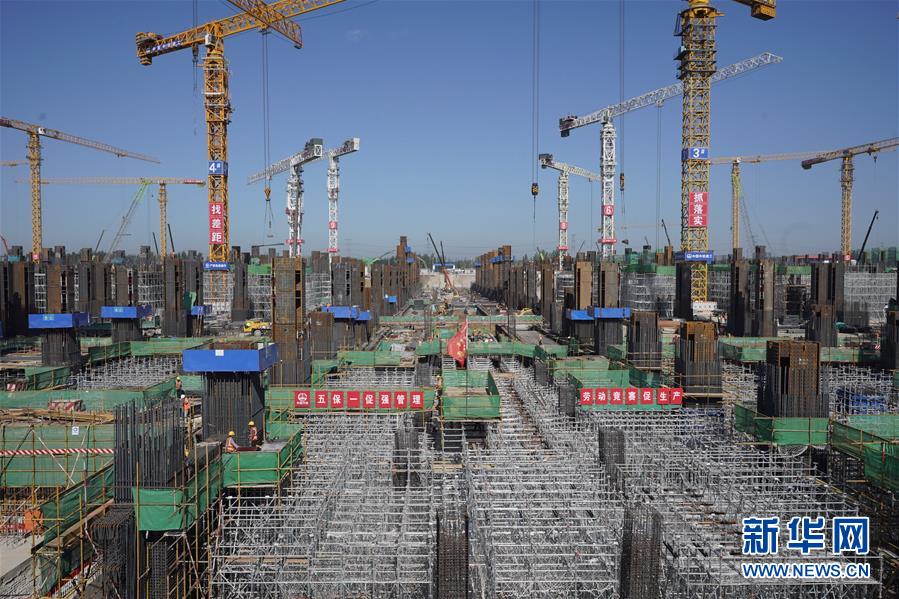 8月27日,工人在雄安站施工。 新華社記者 邢廣利 攝