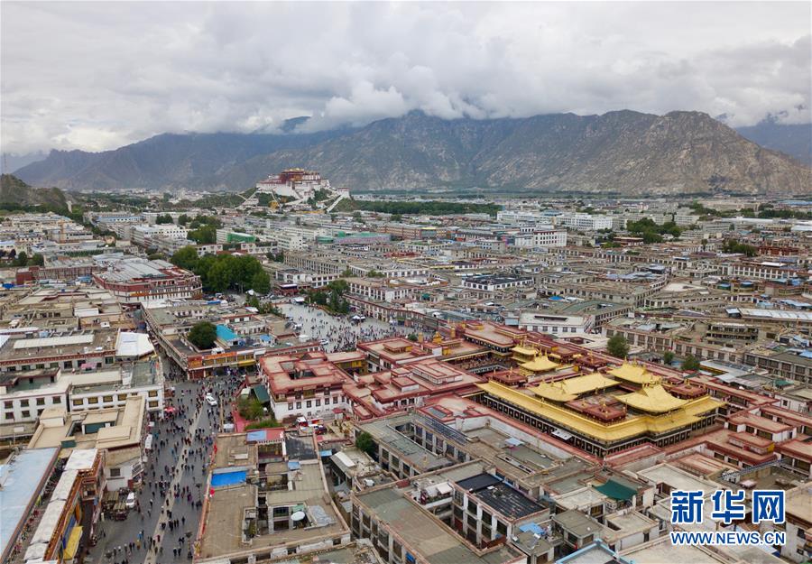 8月10日無人機拍攝的大昭寺和遠處的布達拉宮。新華社記者 侯東濤 攝