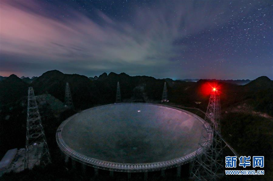 8月27日拍攝的星空下的“中國(guó)天眼”。新華社記者 歐東衢 攝