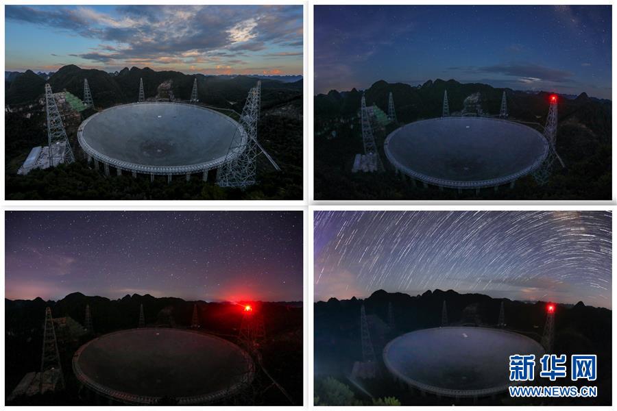 8月28日拍攝的不同光線環(huán)境下的“中國(guó)天眼”(拼版照片,檢修期間拍攝)。新華社記者 歐東衢 攝
