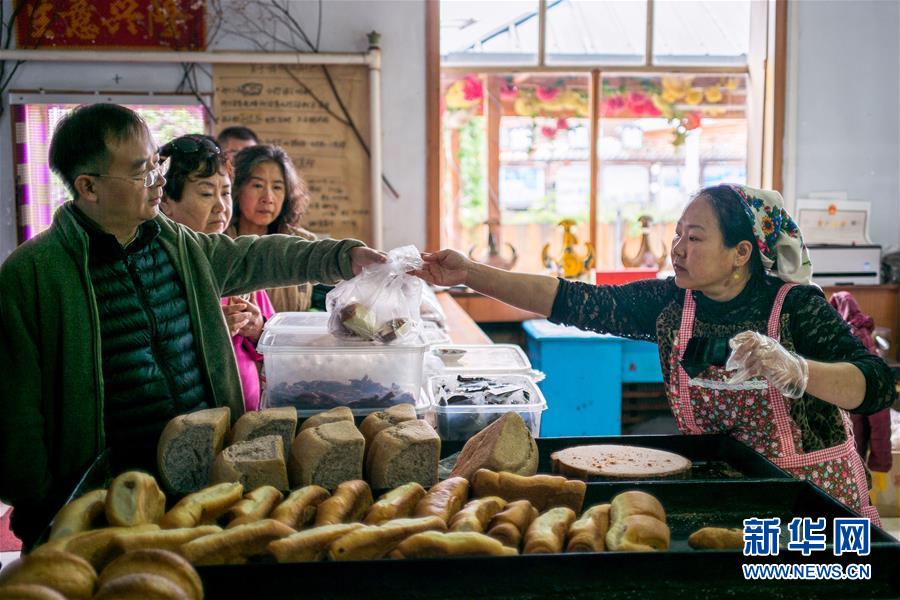 8月27日,游客在付艷梅的列巴房內(nèi)買面包。新華社記者張豪夫攝