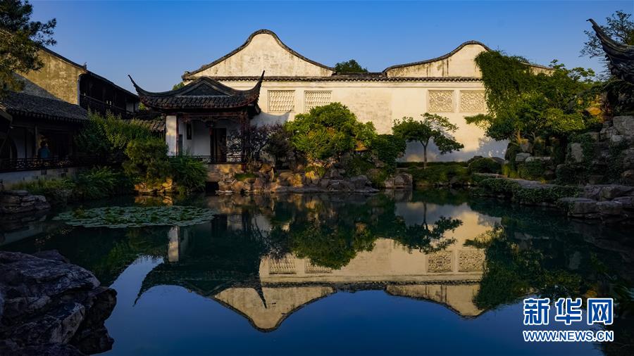 這是5月22日拍攝的夕陽(yáng)下的蘇州網(wǎng)師園。 新華社記者 沈伯韓 攝