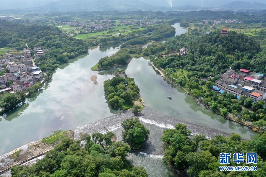 這是6月30日無人機(jī)拍攝的廣西興安縣靈渠。 位于廣西興安縣的靈渠是世界上保存最完整的古代水利工程之一,至今仍發(fā)揮著農(nóng)田灌溉、排洪泄洪作用。2018年,靈渠入選世界灌溉工程遺產(chǎn)名錄。 新華社記者 周華 攝
