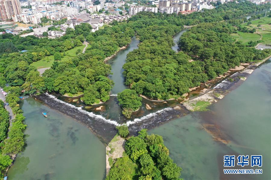 這是6月30日無人機(jī)拍攝的廣西興安縣靈渠。 位于廣西興安縣的靈渠是世界上保存最完整的古代水利工程之一,至今仍發(fā)揮著農(nóng)田灌溉、排洪泄洪作用。2018年,靈渠入選世界灌溉工程遺產(chǎn)名錄。 新華社記者 周華 攝