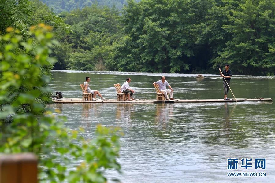 5月29日,沿岸村莊的巡河護(hù)河隊(duì)在巡查河面,清除上游下來(lái)的垃圾。新華社記者彭昭之?dāng)z