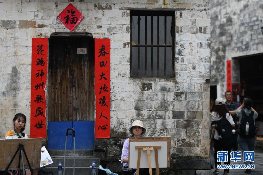 4月24日,繪畫(huà)愛(ài)好者在西遞風(fēng)景區(qū)寫(xiě)生。新華社記者張端攝