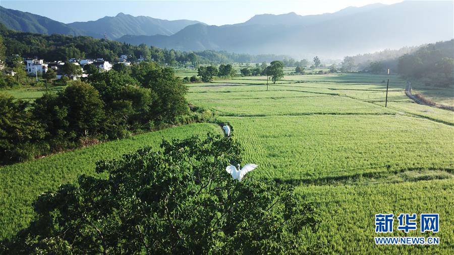 這是8月4日無(wú)人機(jī)拍攝的安徽黟縣宏村風(fēng)景區(qū)附近的農(nóng)田晨景。新華社記者張端攝