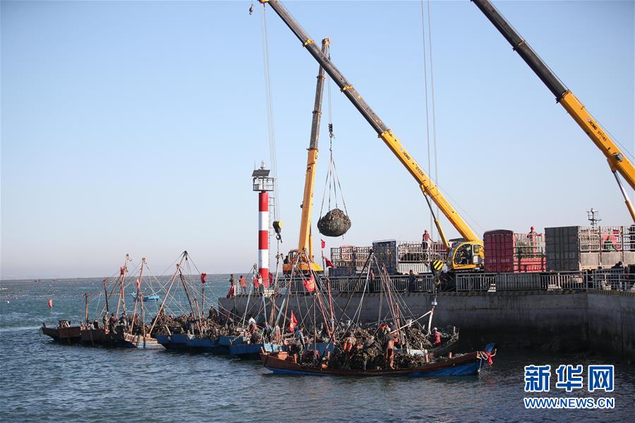 當(dāng)日,在遼寧省大連市長(zhǎng)??h廣鹿島海域,漁民忙碌地打撈牡蠣,呈現(xiàn)一片繁忙的豐收景象。近年來(lái),大連市持續(xù)加強(qiáng)海洋牧場(chǎng)建設(shè),目前已累計(jì)建設(shè)海洋牧場(chǎng)約36萬(wàn)公頃,投放各類魚(yú)礁約1578萬(wàn)平方米,建立國(guó)家級(jí)海洋牧場(chǎng)示范區(qū)14處。