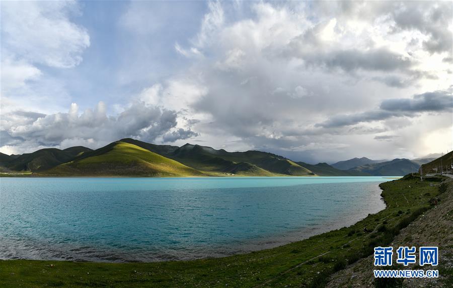 8月31日拍攝的羊卓雍錯風光(拼接照片)。新華社記者李鑫攝