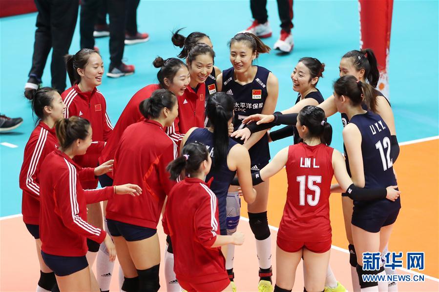 9月24日,中國隊(duì)球員慶祝比賽獲勝。新華社記者杜瀟逸攝