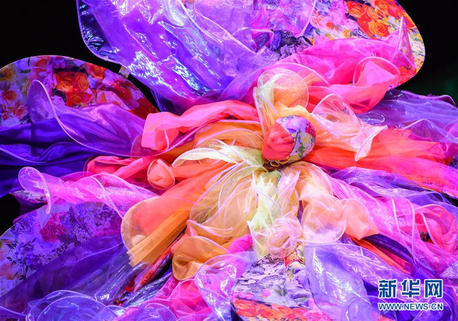 9月26日,在新西蘭首都惠靈頓舉行的世界可穿著藝術(shù)大賽年度秀場(chǎng)表演中,模特展示入圍作品。 新華社記者郭磊攝