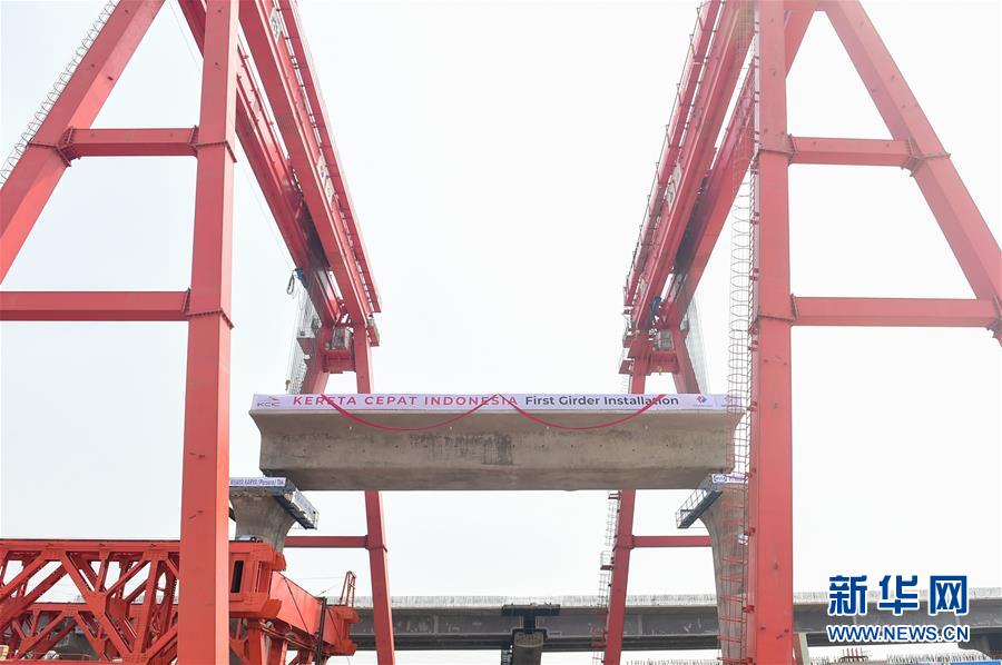 9月30日,雅萬高鐵全線首榀箱梁成功架設(shè)。 印度尼西亞雅萬高鐵全線首榀箱梁9月30日架設(shè)成功,高鐵建設(shè)繼續(xù)穩(wěn)步推進(jìn)。雅萬高鐵全長142公里,最高設(shè)計時速350公里,2018年6月全面開工,總工期為36個月,今年是施工建設(shè)全面提速的關(guān)鍵年。建成通車后,雅加達(dá)至萬隆的時間將由現(xiàn)在的3個多小時縮短至40分鐘。 新華社記者 杜宇 攝