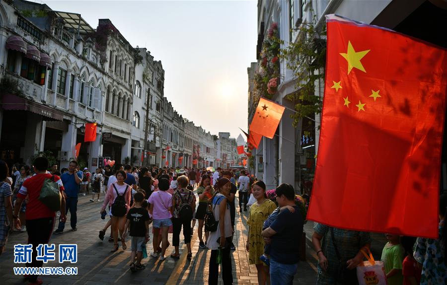 10月1日,游客在??隍T樓老街參觀游玩。當(dāng)日是國慶節(jié),全國各地的人們用各種方式歡度節(jié)日。新華社記者 郭程 攝