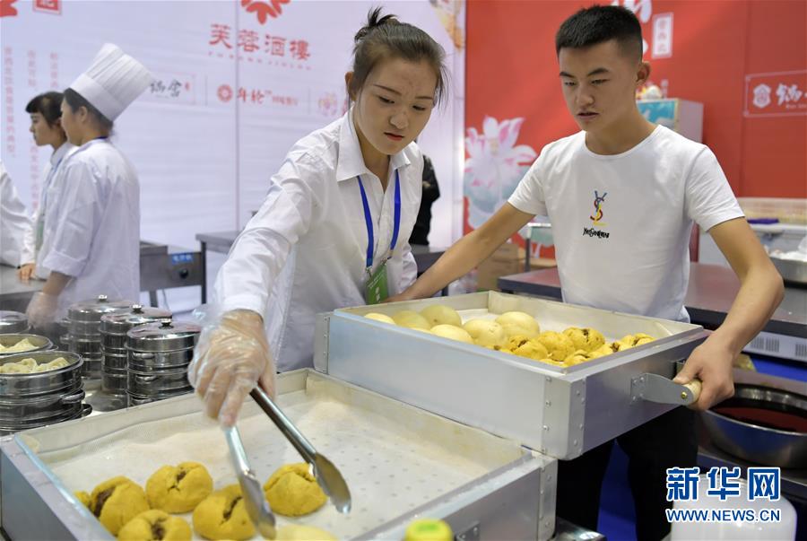 10月3日,面食師傅們?cè)谥谱骱訐泼?。新華社記者 曹陽 攝