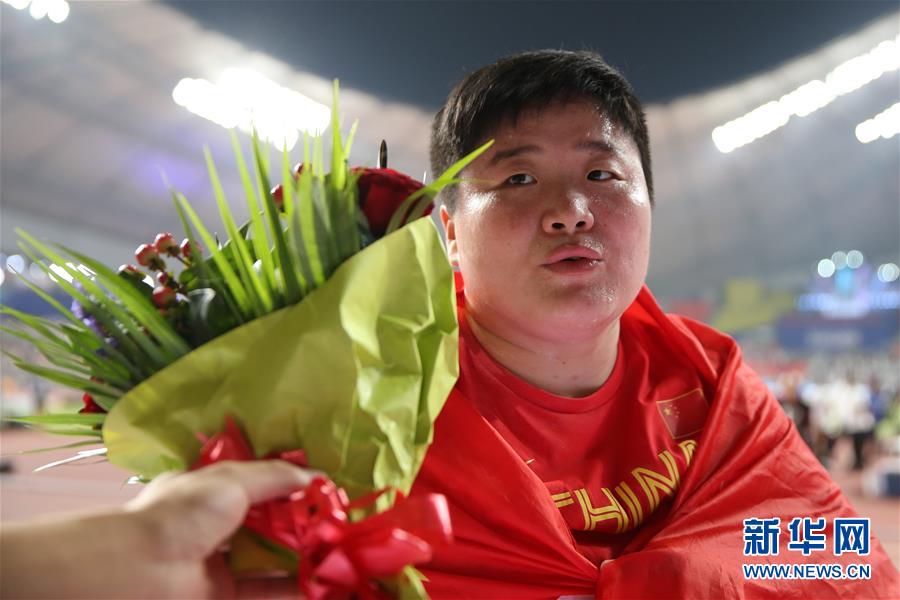當日,在卡塔爾多哈舉行的2019國際田聯世界田徑錦標賽女子鉛球決賽中,衛(wèi)冕冠軍、中國選手鞏立姣以19米55的成績奪得冠軍。 新華社記者李明攝