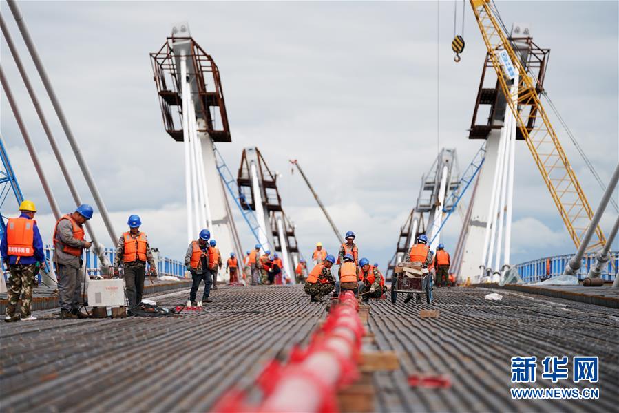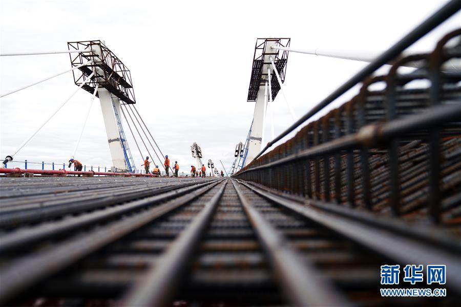 目前,中俄合建的首座跨境公路大橋——黑河到布拉戈維申斯克黑龍江(阿穆爾河)大橋進入橋面鋪裝施工作業(yè)階段。大橋于今年5月31日順利合龍,目前中方每天有約200名工人進行混凝土澆鑄橋面作業(yè),預計橋面施工將持續(xù)到9月上旬。大橋全長1284米,建成后將形成一條新的國際公路通道,實現(xiàn)中俄地方城市之間互聯(lián)互通。