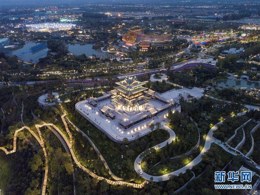 北京世園會(huì)園區(qū)內(nèi)的永寧閣(10月7日無(wú)人機(jī)拍攝)。新華社記者才揚(yáng)攝