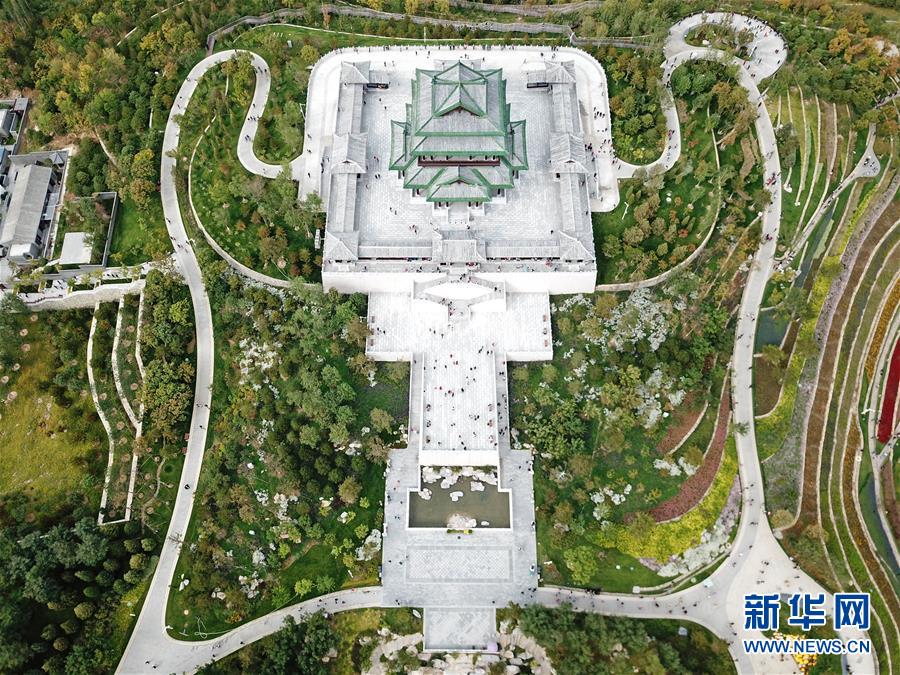 北京世園會園區(qū)內(nèi)的永寧閣(10月6日無人機(jī)拍攝)。新華社記者才揚(yáng)攝