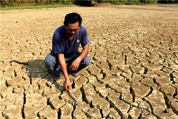 2019年10月4日,江西彭澤縣黃嶺鄉(xiāng)芳湖村,池塘干枯見底。圖為曾經(jīng)水草豐盈的池塘已經(jīng)缺水干枯。