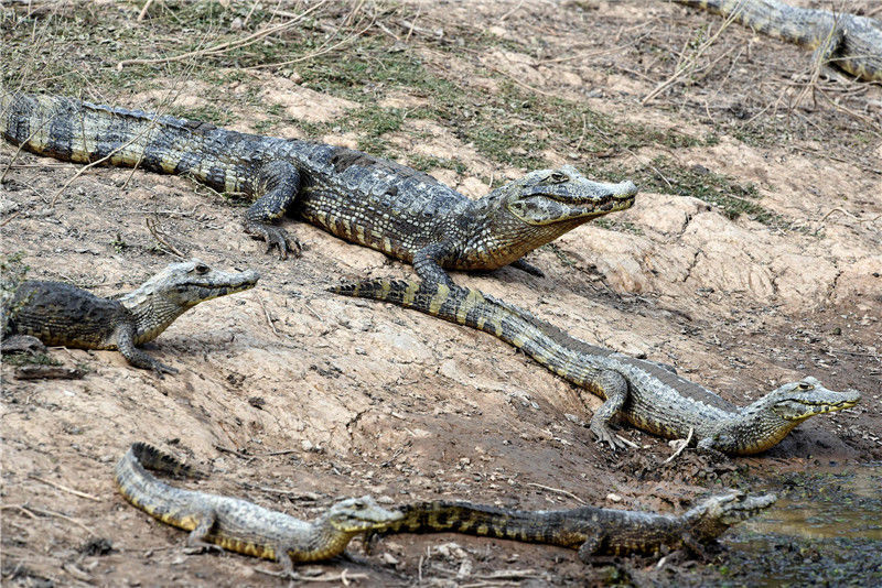 當(dāng)?shù)貢r間2016年6月24日,巴拉圭General Diaz,巴拉圭與阿根廷邊境遭遇嚴(yán)重干旱,皮科馬約河河水枯竭,凱門鱷在水塘內(nèi)。