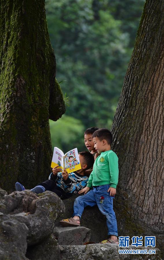 黔桂烏英苗寨的孩子們?cè)陂喿x剛剛獲贈(zèng)的圖書(10月11日攝)。新華社記者 黃孝邦 攝