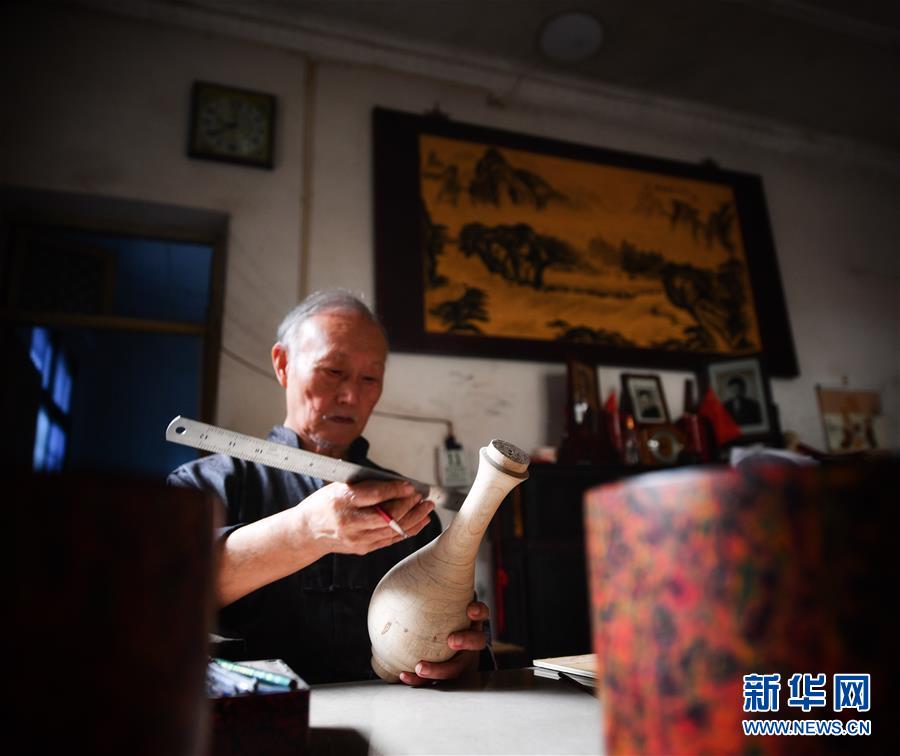 10月12日,丁國坤在家中檢查最新制成一批脫胎漆器的質(zhì)量。新華社記者胡晨歡攝