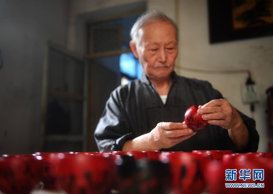 10月12日,丁國坤在家中檢查最新制成一批脫胎漆器的質量。新華社記者胡晨歡攝