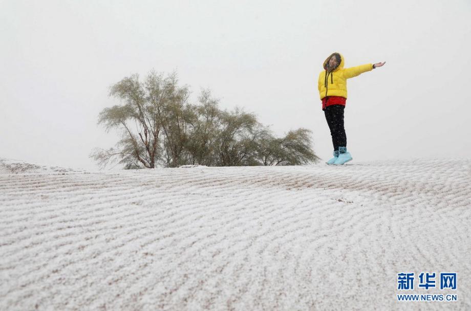 10月15日,游客在寧夏中衛(wèi)市沙坡頭景區(qū)欣賞沙漠雪景。深秋時節(jié),位于騰格里沙漠邊緣的寧夏中衛(wèi)市沙坡頭景區(qū)迎來一場降雪。漫漫黃沙被覆蓋在皚皚白雪之下,呈現(xiàn)出一種別樣的美。新華網(wǎng)杜文杰攝
