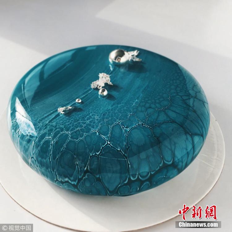 烘焙師運(yùn)用特殊工藝制作的鏡面慕斯蛋糕。圖片來源:視覺中國