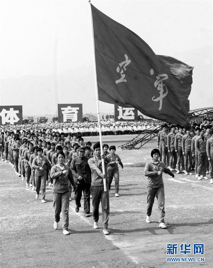 中國(guó)人民解放軍第四屆體育運(yùn)動(dòng)大會(huì)于1979年5月13日在北京隆重開幕。這是空軍運(yùn)動(dòng)員在第四屆全軍運(yùn)動(dòng)會(huì)開幕式上。新華社記者吳森輝攝
