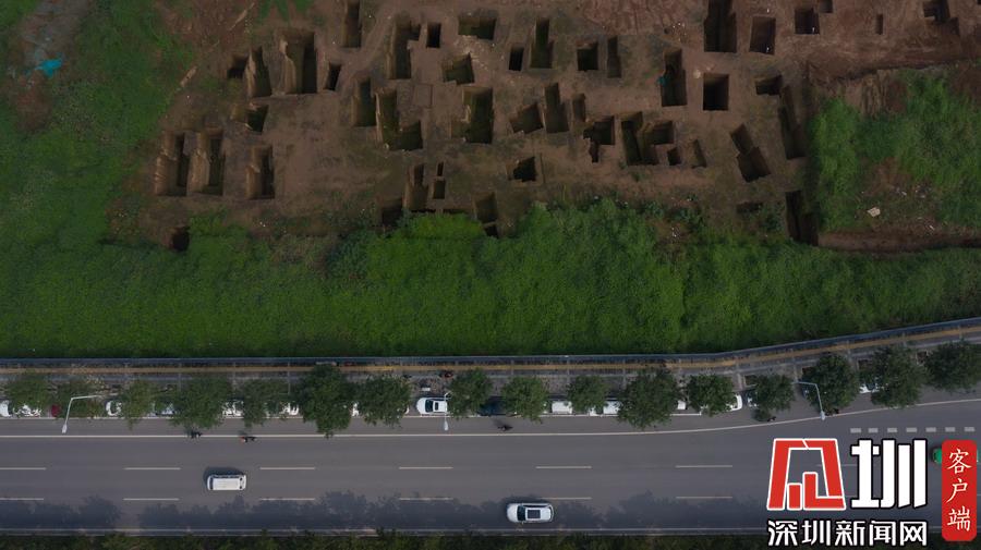 西安宜家工地挖出古墓 空中俯瞰數(shù)百墓坑密密麻麻