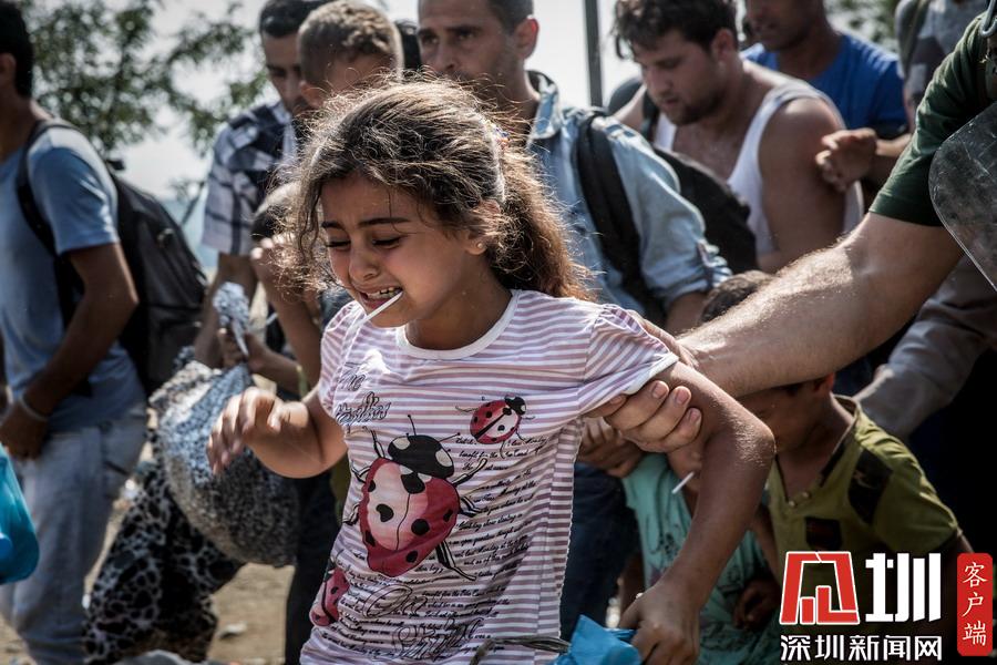 當(dāng)?shù)貢r間2015年8月26日,馬其頓蓋夫蓋利亞,一名敘利亞女孩越過馬其頓與希臘的邊境。