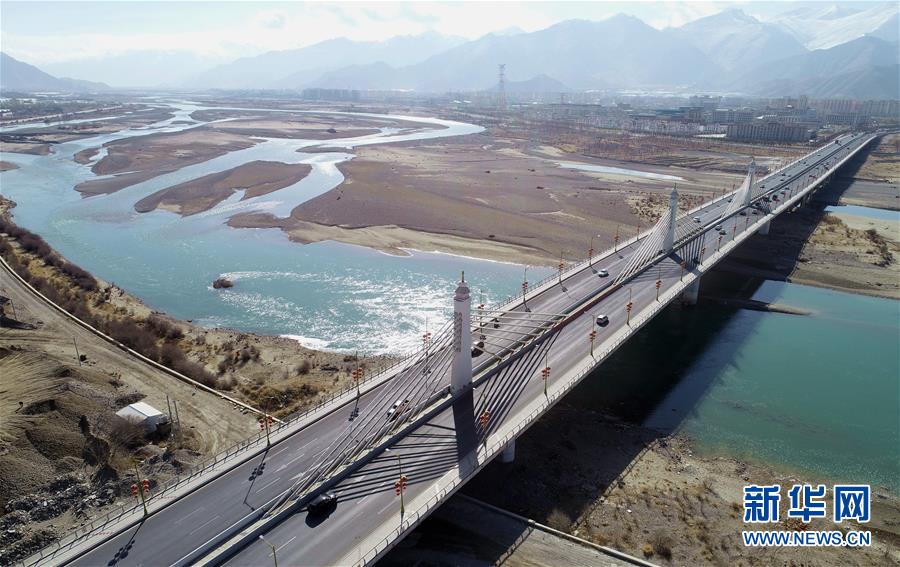 拉薩市環(huán)城路納金大橋段(4月3日無人機(jī)拍攝)。 新華社記者 晉美多吉 攝