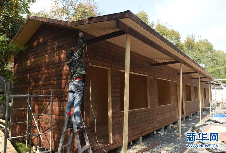 10月24日,一名工人在對班竹村新建的旅游設(shè)施進(jìn)行外部裝修。新華社記者韓傳號攝