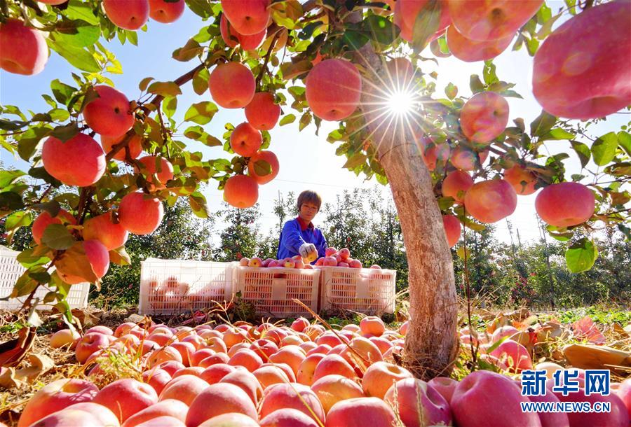10月25日,灤州市王店子鎮(zhèn)的果民在分揀剛采摘的蘋果。新華社記者楊世堯攝