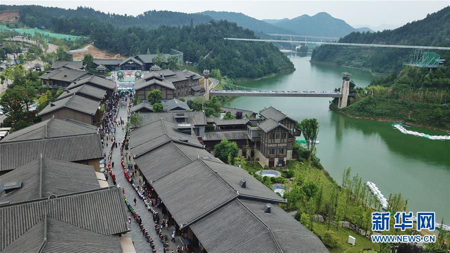 7月2日無人機拍攝的丹寨萬達小鎮(zhèn)一角。2017年7月,貴州省丹寨縣的丹寨萬達小鎮(zhèn)對外開放。兩年來,丹寨萬達小鎮(zhèn)游客接待量持續(xù)增長,為700余名貧困戶提供就業(yè)崗位,有力助推了丹寨縣的脫貧攻堅工作。新華社記者歐東衢攝