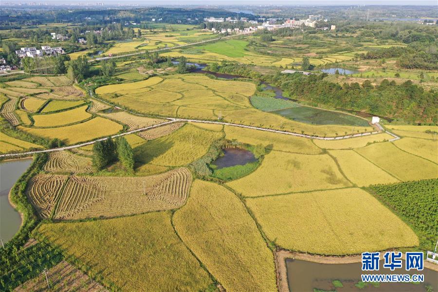 河南省信陽市光山縣文殊鄉(xiāng)東岳村的稻田(9月4日無人機(jī)拍攝)。新華社記者馮大鵬攝