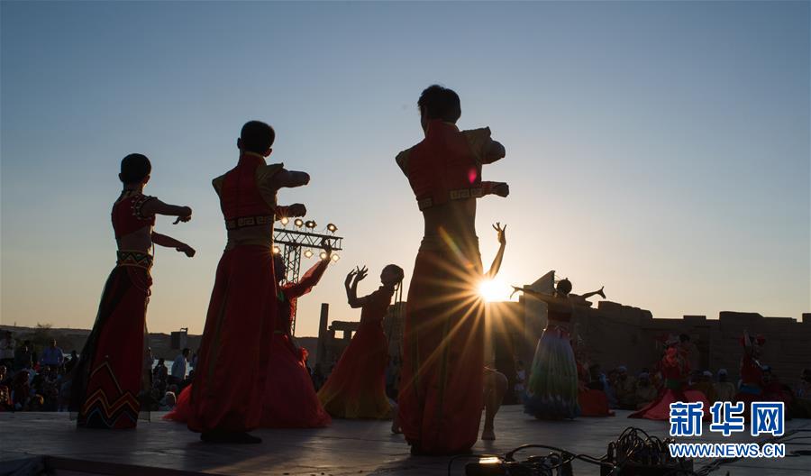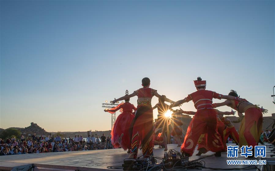 10月27日,來自福建省廈門市的小白鷺民間舞團(tuán)的演員在位于埃及阿斯旺的菲萊神廟表演。 新華社記者 鄔惠我 攝
