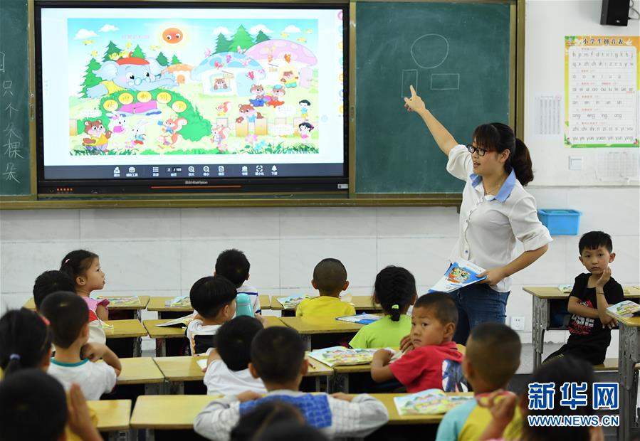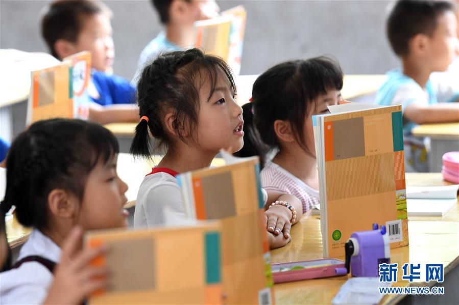 9月3日,金寨縣希望小學(xué)南校區(qū)學(xué)生在上課。新華社記者張端攝