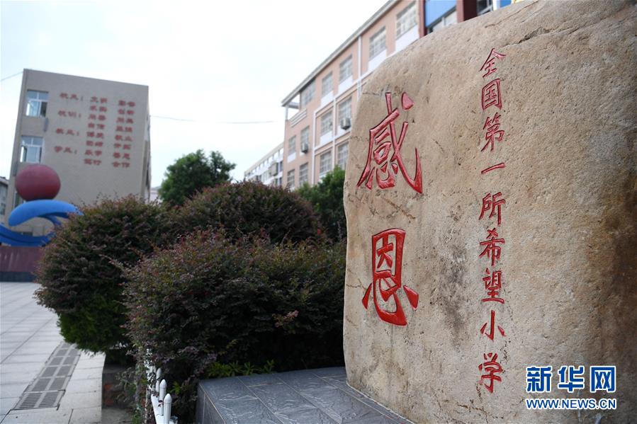 這是金寨縣希望小學(xué)校園里的“感恩”石(9月3日攝)。新華社記者劉軍喜攝