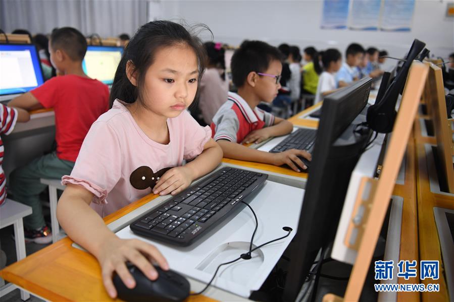 9月3日,金寨縣希望小學(xué)南校區(qū)學(xué)生在上計算機(jī)課。新華社記者張端攝