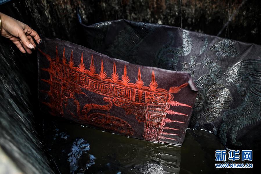10月28日,楊芳在家中對繪好的蠟畫進行染制。新華社記者 歐東衢 攝