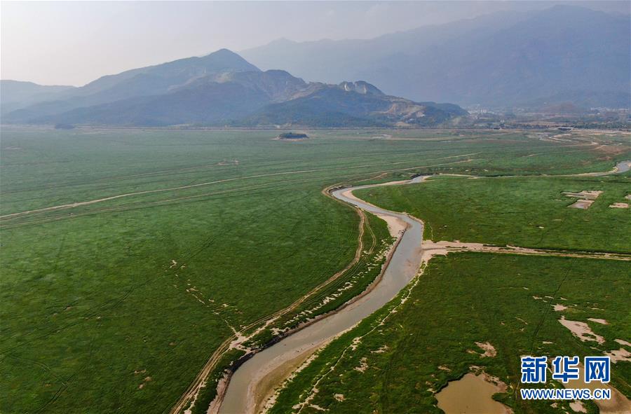 這是在江西省廬山市拍攝的鄱陽湖湖區(qū)(10月9日無人機拍攝)。