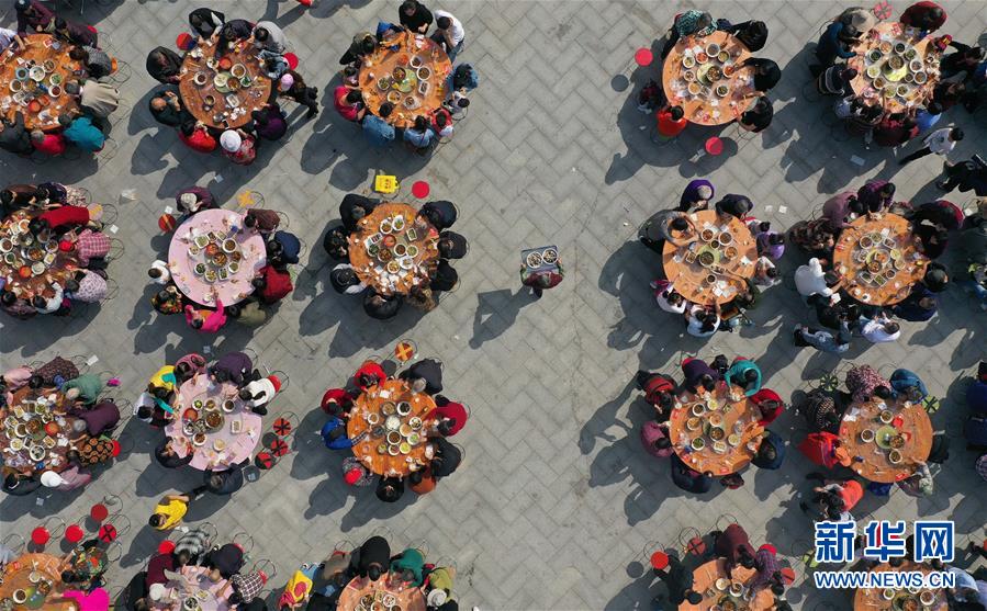 11月2日,南京仙林街道仙林新村社區(qū)居民參加千家宴(無(wú)人機(jī)拍攝)。 新華社記者 季春鵬 攝