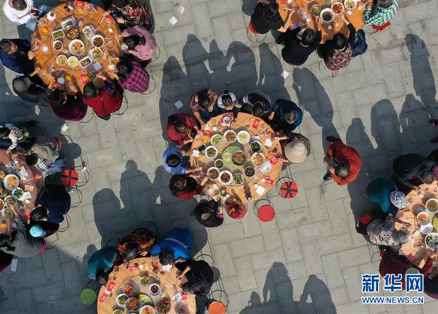 11月2日,南京仙林街道仙林新村社區(qū)居民參加千家宴(無人機(jī)拍攝)。 新華社記者 季春鵬 攝