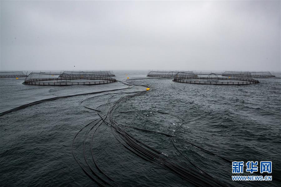 這是9月13日在俄羅斯摩爾曼斯克以北的巴倫支海域拍攝的隸屬于俄羅斯水產(chǎn)養(yǎng)殖公司的鮭魚養(yǎng)殖場(chǎng)。 新華社記者白雪騏攝