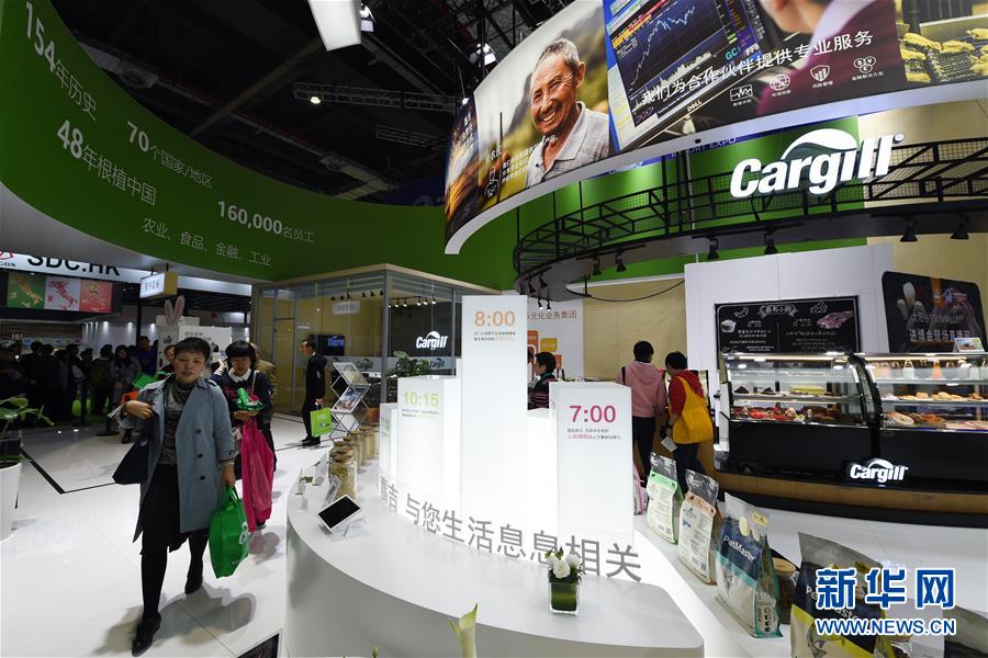11月10日,在第二屆進博會食品及農產(chǎn)品展區(qū),參觀者在美國嘉吉公司展臺參觀。新華社記者范培珅攝