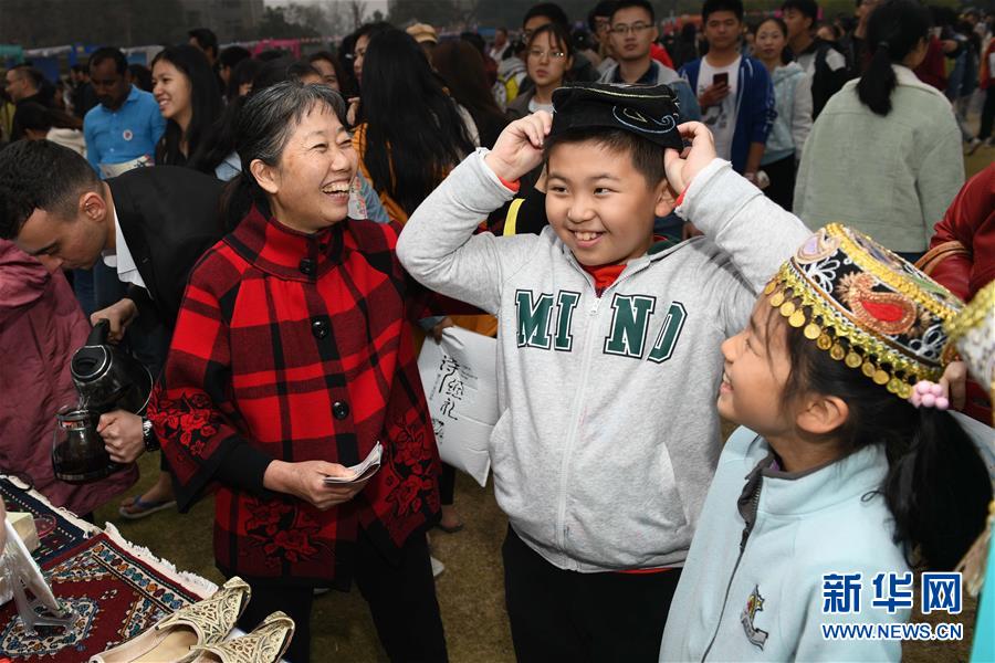 11月17日,來自俄羅斯的留學(xué)生在國際文化節(jié)上與觀眾合影。新華社記者 張端 攝