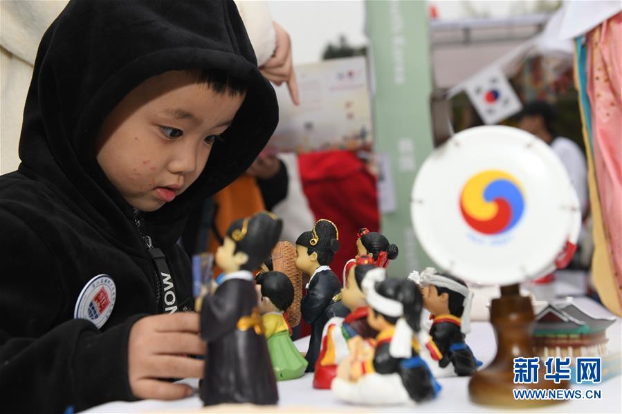 11月17日,一名小觀眾在國(guó)際文化節(jié)韓國(guó)文化展示區(qū)參觀。新華社記者 張端 攝